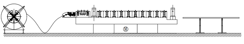 Decoiler→Feeding Guide Device→Leveling Device→Punching Device→Roll Forming System→Hydraulic Post Cutting Device→Exit Rack
