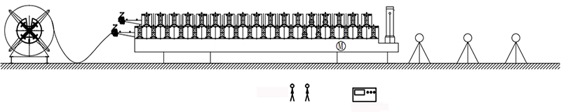 Decoiler→Manual Pre-Cutter→Guide Feeding →Roll Forming System→Hydraulic Post Cutter →Exit Rack