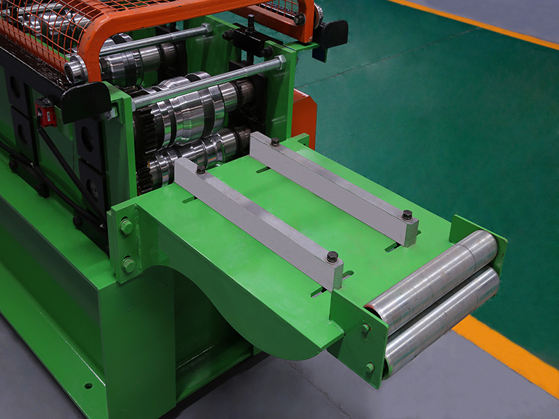 A left and right guiding device at the main entrance of the machine. During work,Raw materials on both sides of the plate the enter into the machine by the left and right guiding device,make the raw materials and roll forming system to maintain the correct position. The guiding position can be adjusted by the manual screw mechanism,and the left and right can be adjusted independently.