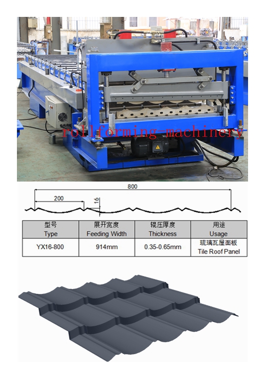 The tile roof machine can produce various of tile panel, which are used to construct curvaceous roofs, It can substitute the traditional clayey tile and cement tile and save much land resources. And the raw material can be in different color, with elegant and noble looking.