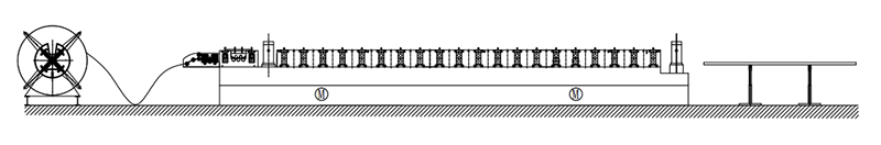 Decoiler→Guide Feeding & Leveling Device→Punching Device→Roll Forming System→Hydraulic Post Cutter →Exit Rack