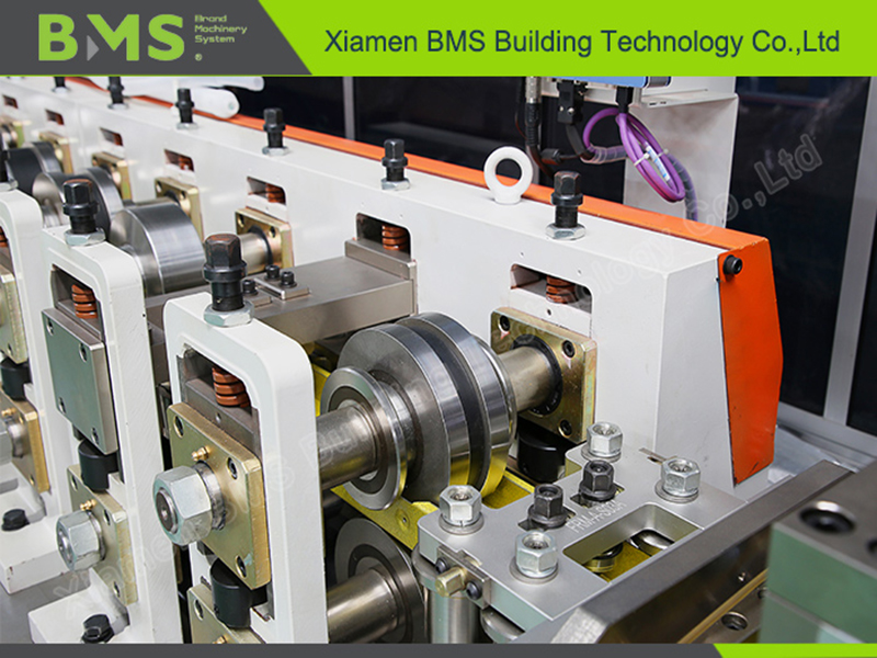 Left and right guiding device. The material enters into the main forming machine through left and right guiding device to reach the material feeding and leveling effect