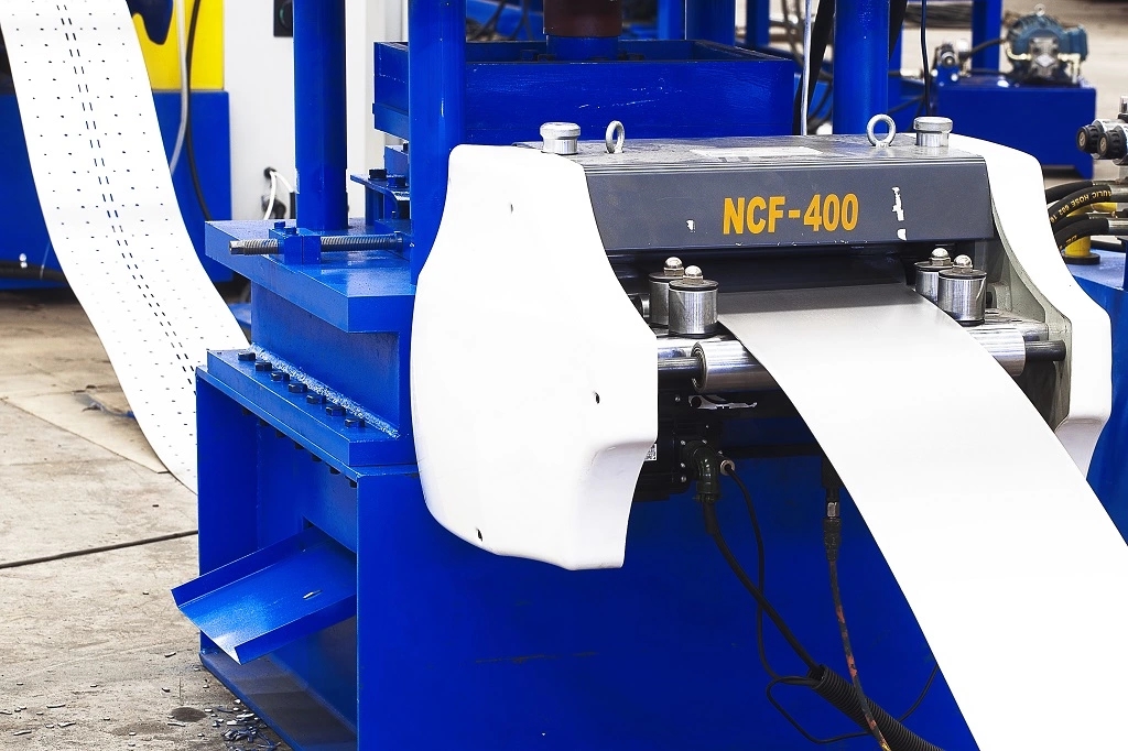 This machine takes galvanized steel or cold rolled steel as the raw materials,