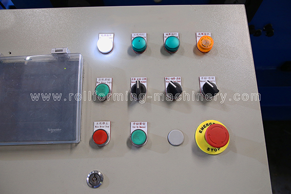 Decoiler (Prepare by yourself) → Feeding Materail Device → Leveling Device → Roll Forming Machine → Hydraulic