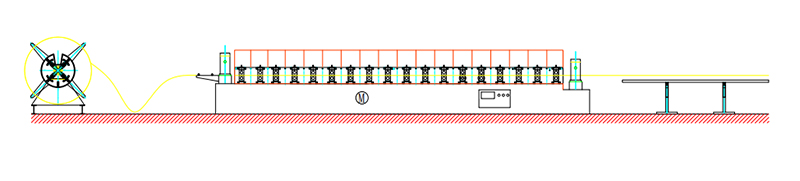 Decoiler→Feeding Guide Device→Hydraulic Pre-Cutting Device→Roll Forming System→Hydraulic Post Cutting Device→Exit Rack