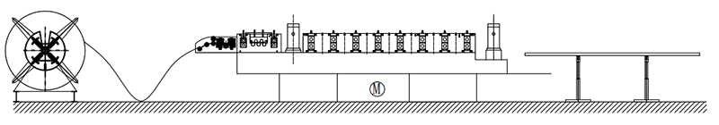 Decoiler→Feeding Guide Device→Leveling Device→Punching Device→Roll Forming System→Hydraulic Post Cutting Device→Exit Rack